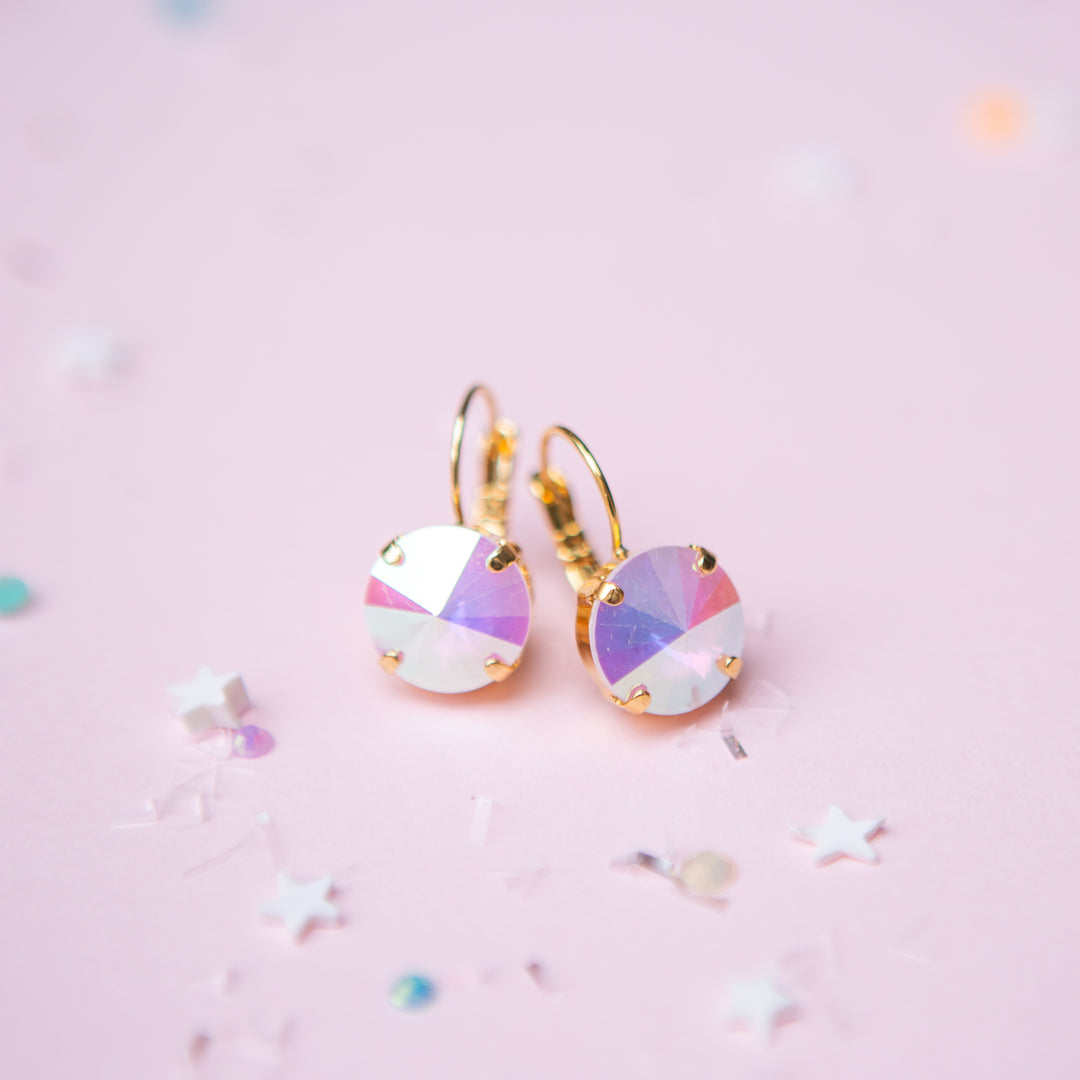 12mm Rivoli Stud OR Drop Earrings- Electric White AB