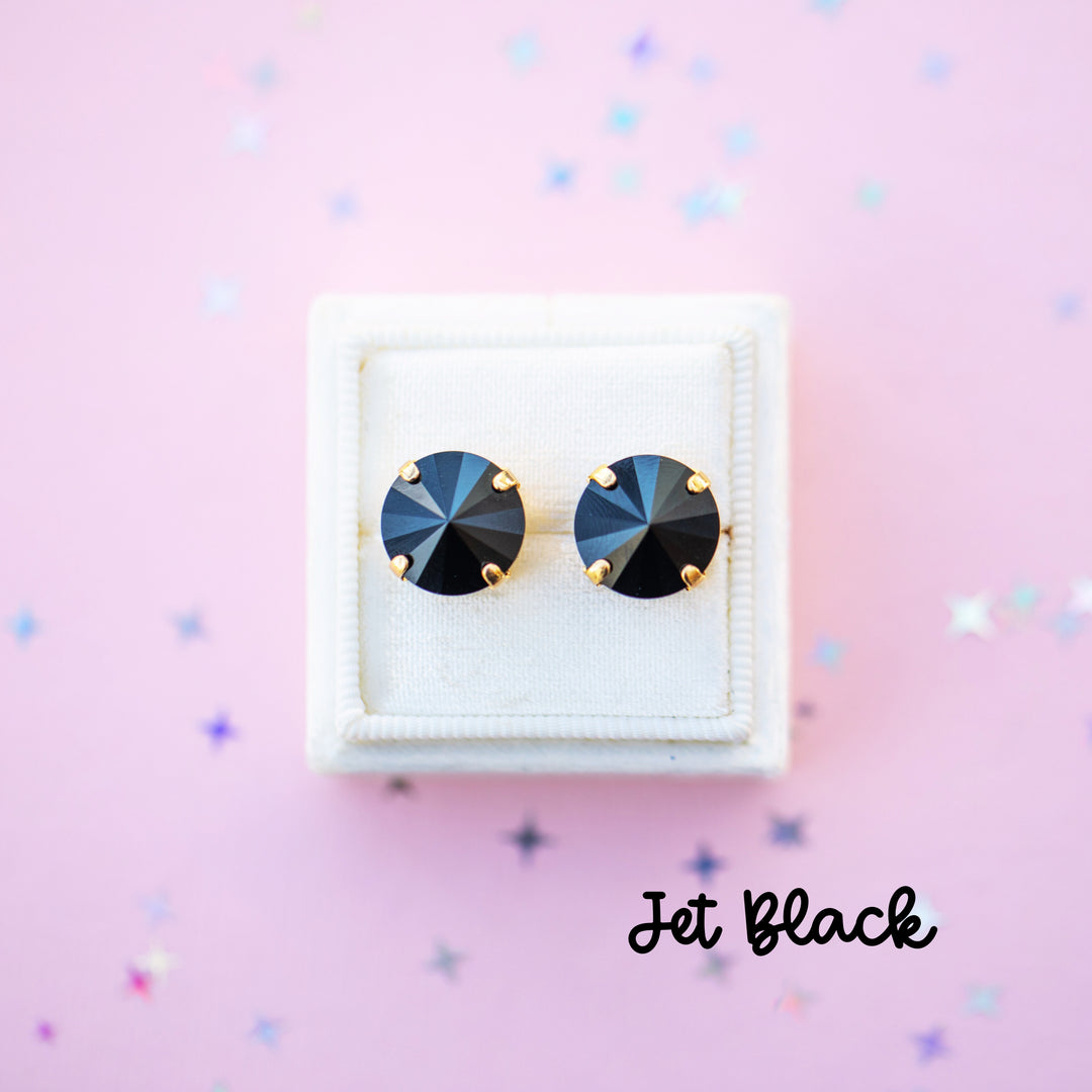 12mm Rivoli Stud OR Drop Earrings- Jet Black