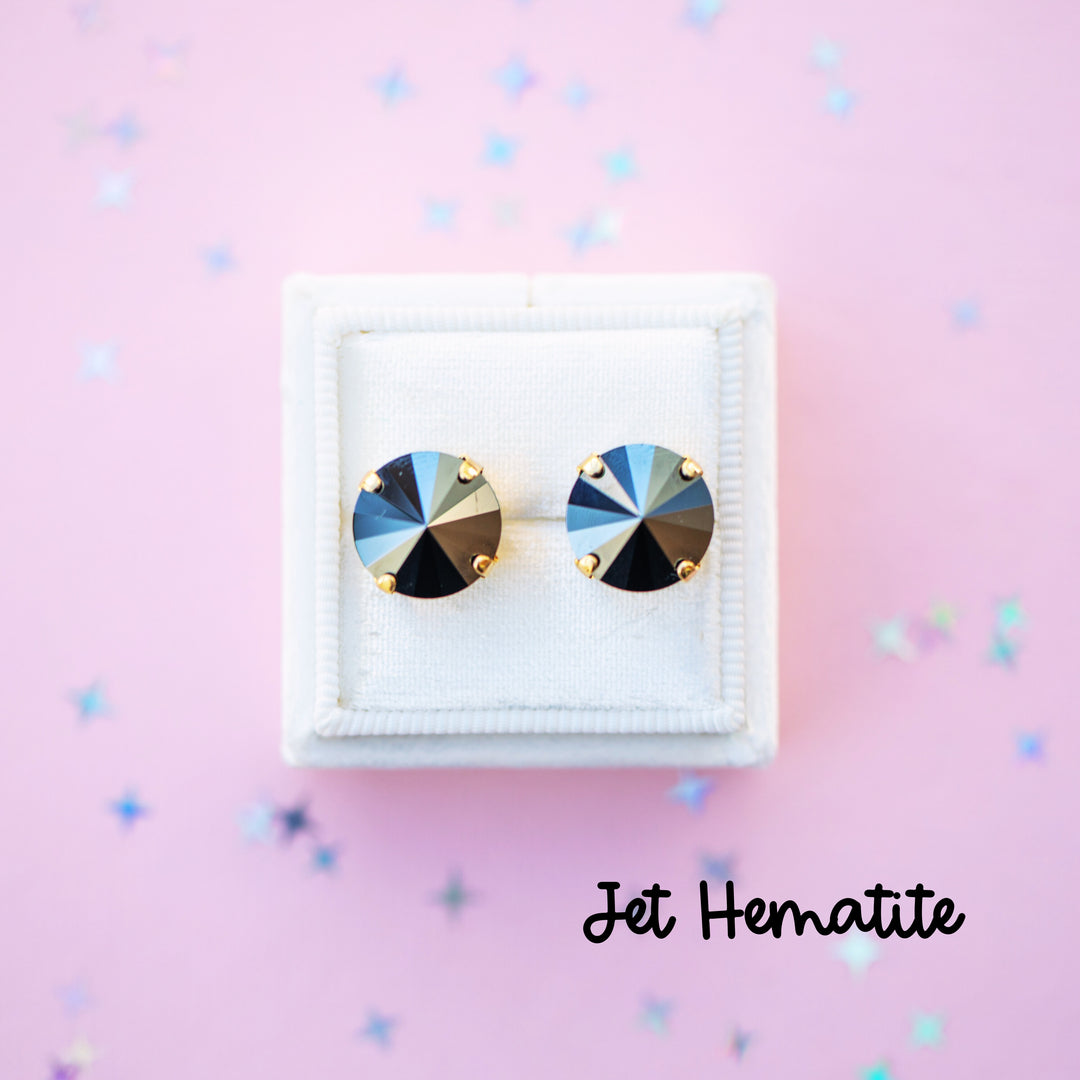 12mm Rivoli Stud OR Drop Earrings- Jet Hematite