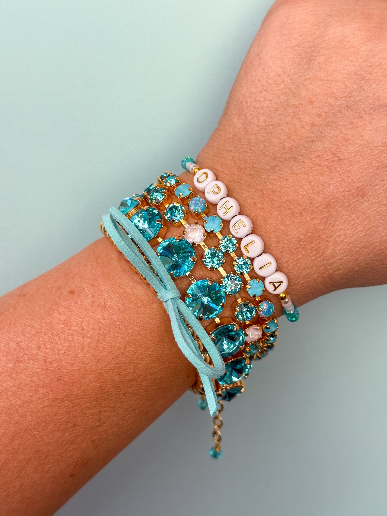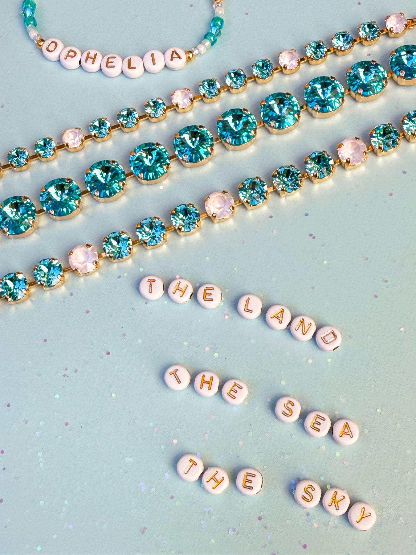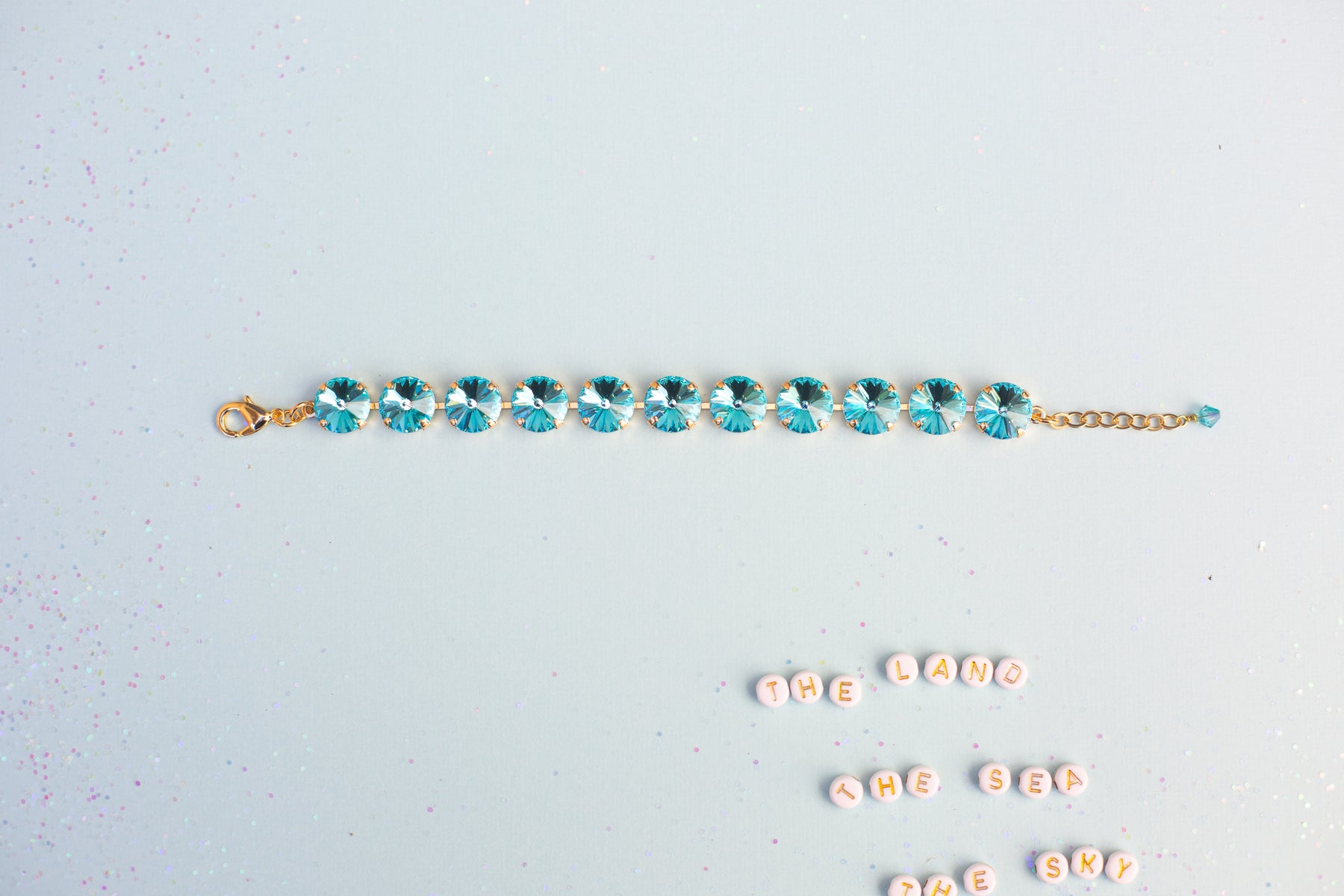 Please avoid using lotions and swimming/showering to extend life. Crystals are glass so please handle with care. Coating on crystals can scratch if rubbed against other hard surfaces over time. Please do not use a soap or water to clean, just a dry polishing cloth.