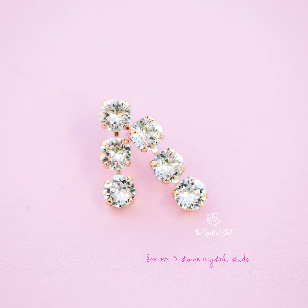 Crystal 8mm 3 stone Stud or Leverback Drop earrings