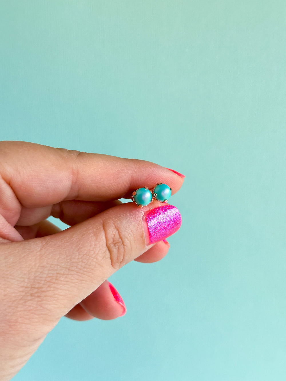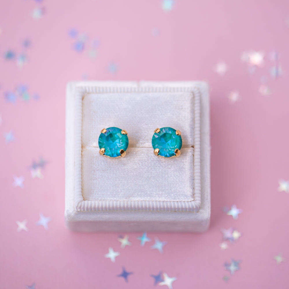 Lt Turquoise Shimmer Earrings -8mm- choose crystal color and setting color
