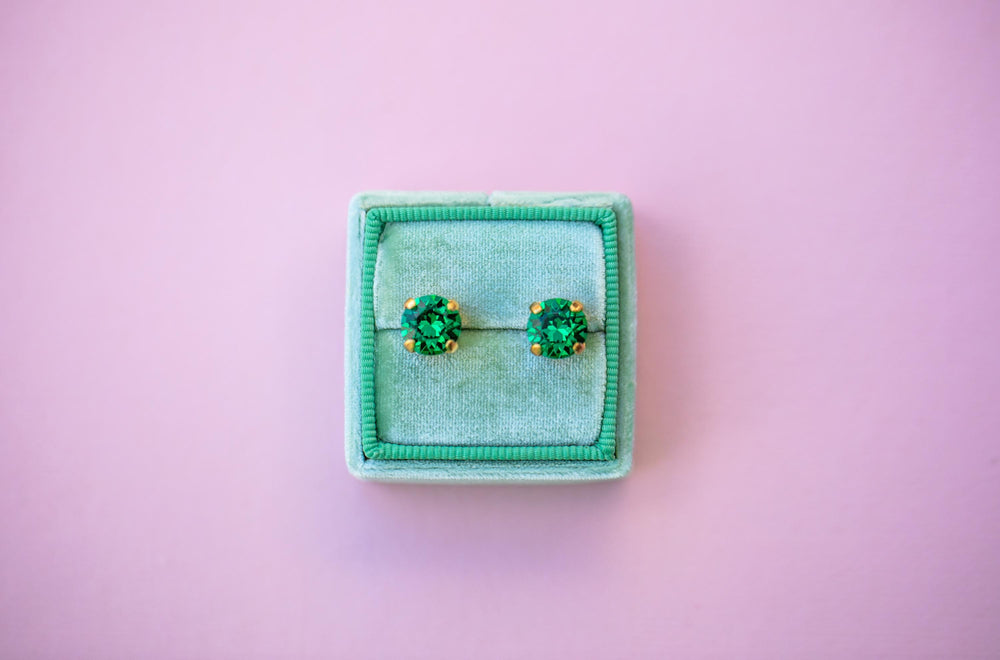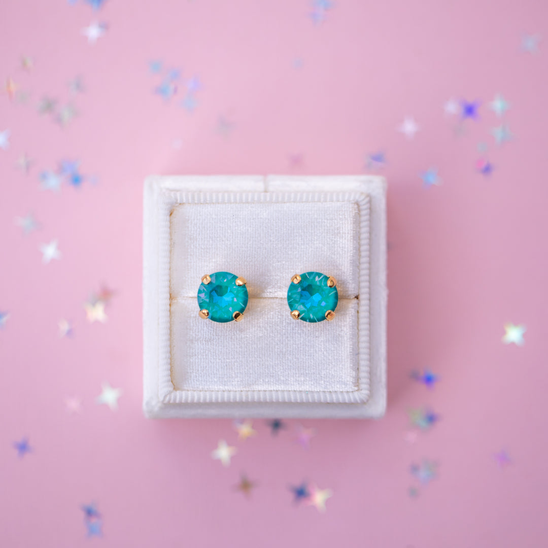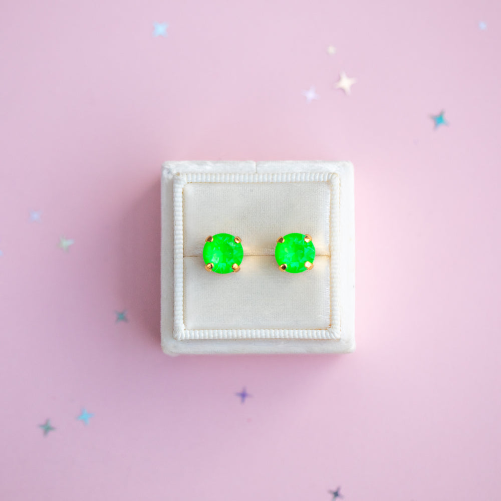 Green Stud Earrings -8mm- choose crystal color and setting color