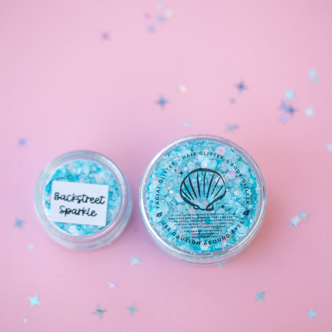 Turn up the shine with our handcrafted glitter crème, perfect for face, body, and even hair! Whether you're headed to a park, race, party, or just feeling extra, this creamy glitter formula glides on smoothly and stays put—no glue or mess needed. This item does stay put but easily wiped away if needed. It is lightweight and creme based and often so lightweight you forget it's on. It is not recommended to wear in an area of body that would wipe away easily or be brushed up against another object or clothing.
