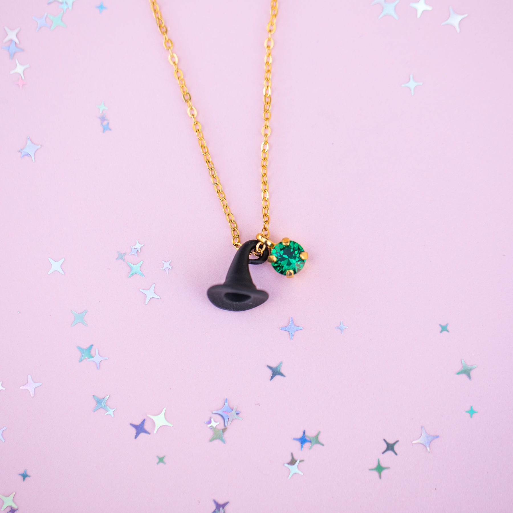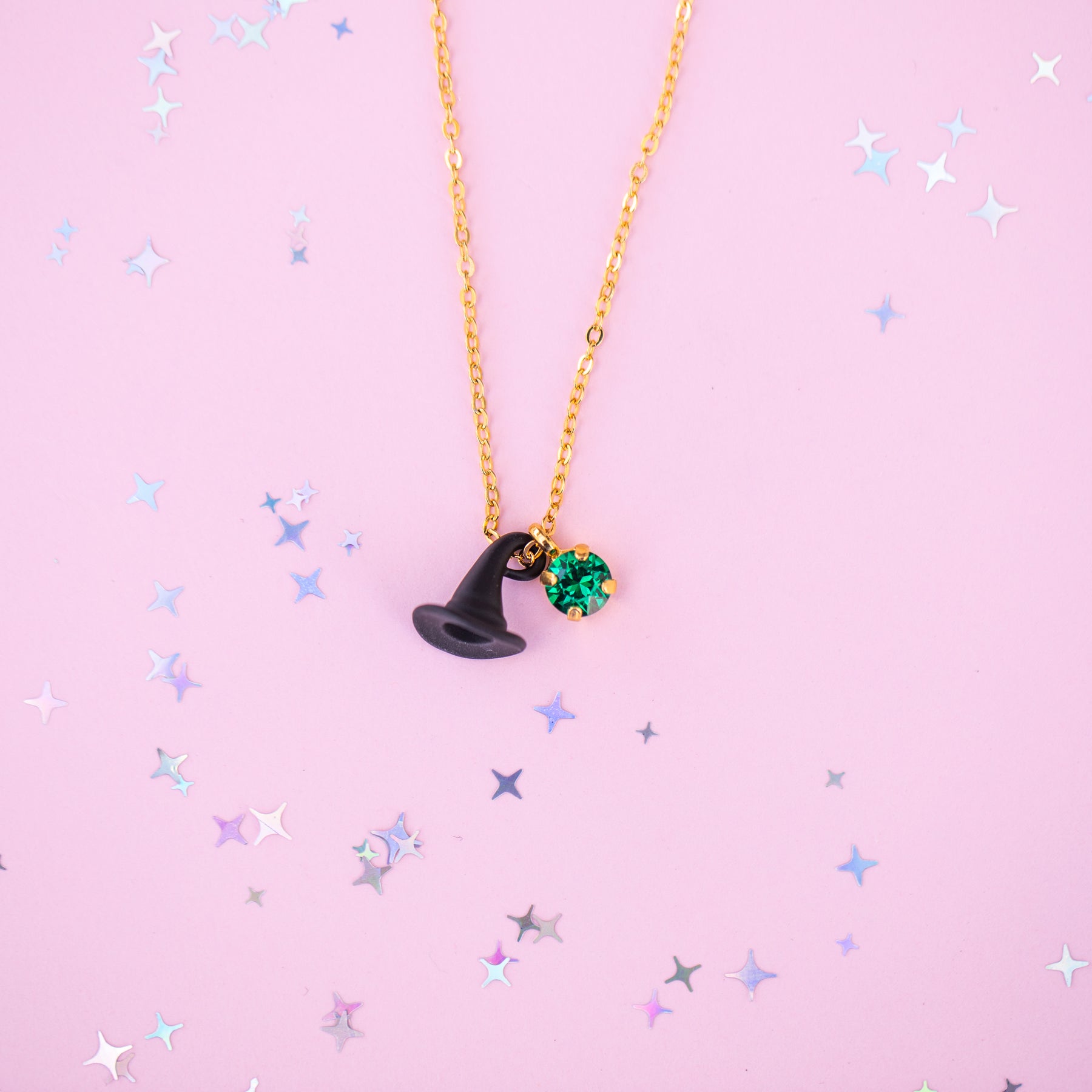 Black Hat Charm Necklace with 6mm Bright Clover Crystal -select color setting