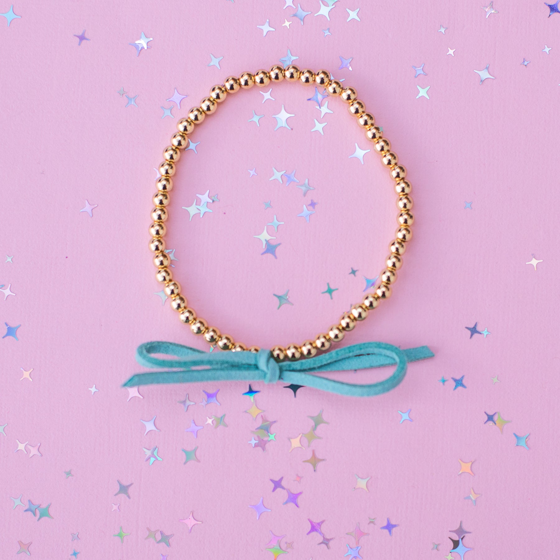 Suede Bow Stretch Beaded Bracelet - Choose setting Color (Showgirl)